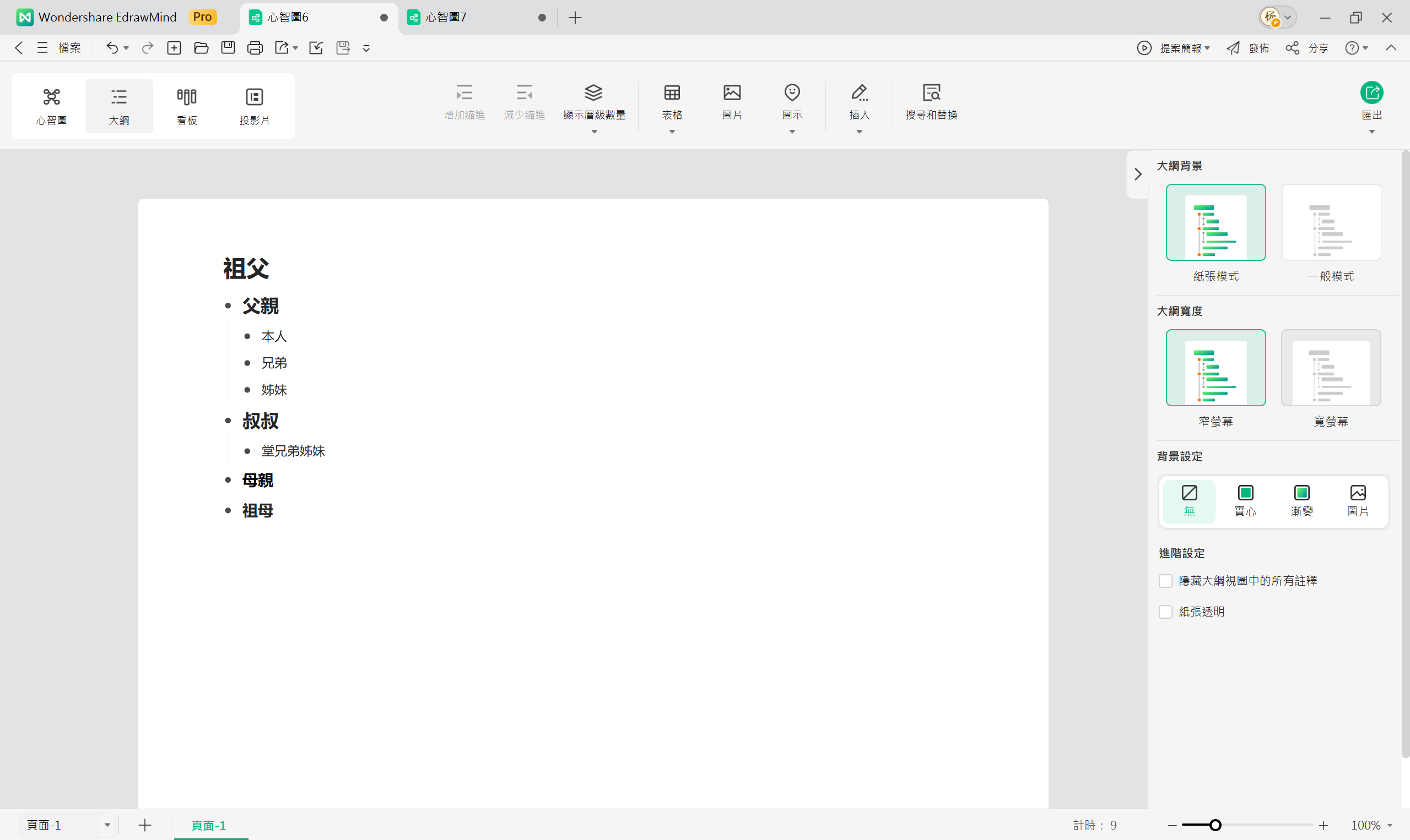 EdrawMind 有個很實用的「大綱模式」功能。你只要用條列方式輸入主題,系統就會自動幫你建立心智圖。接下來就用這個功能來製作 Excel家譜圖製作教學與步驟。