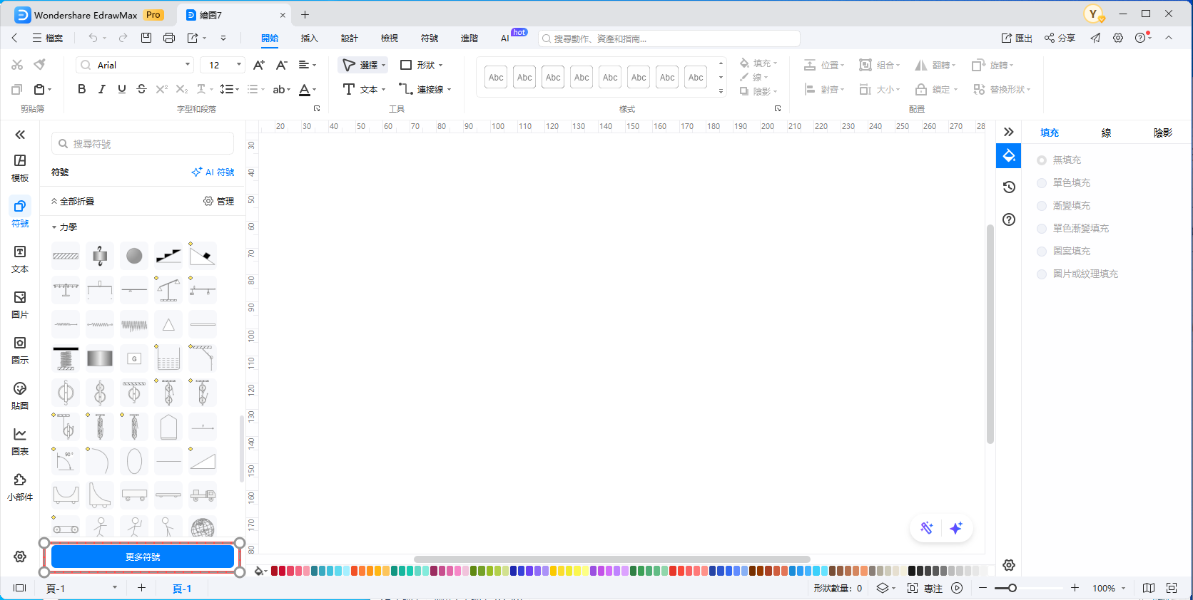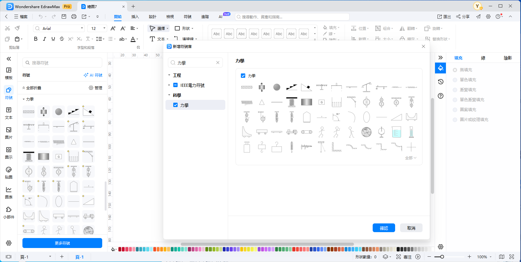 EdrawMax 提供多種物理符號與特殊符號,可大幅提升繪圖效率。點擊左側「更多符號」面板,即可看到各領域的符號分類。